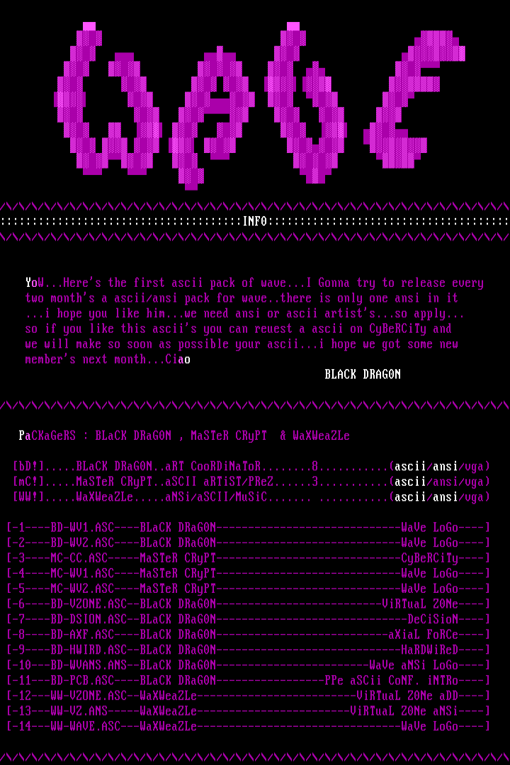 two months a ascii/ansi pack for wave..there is only one ansi in it