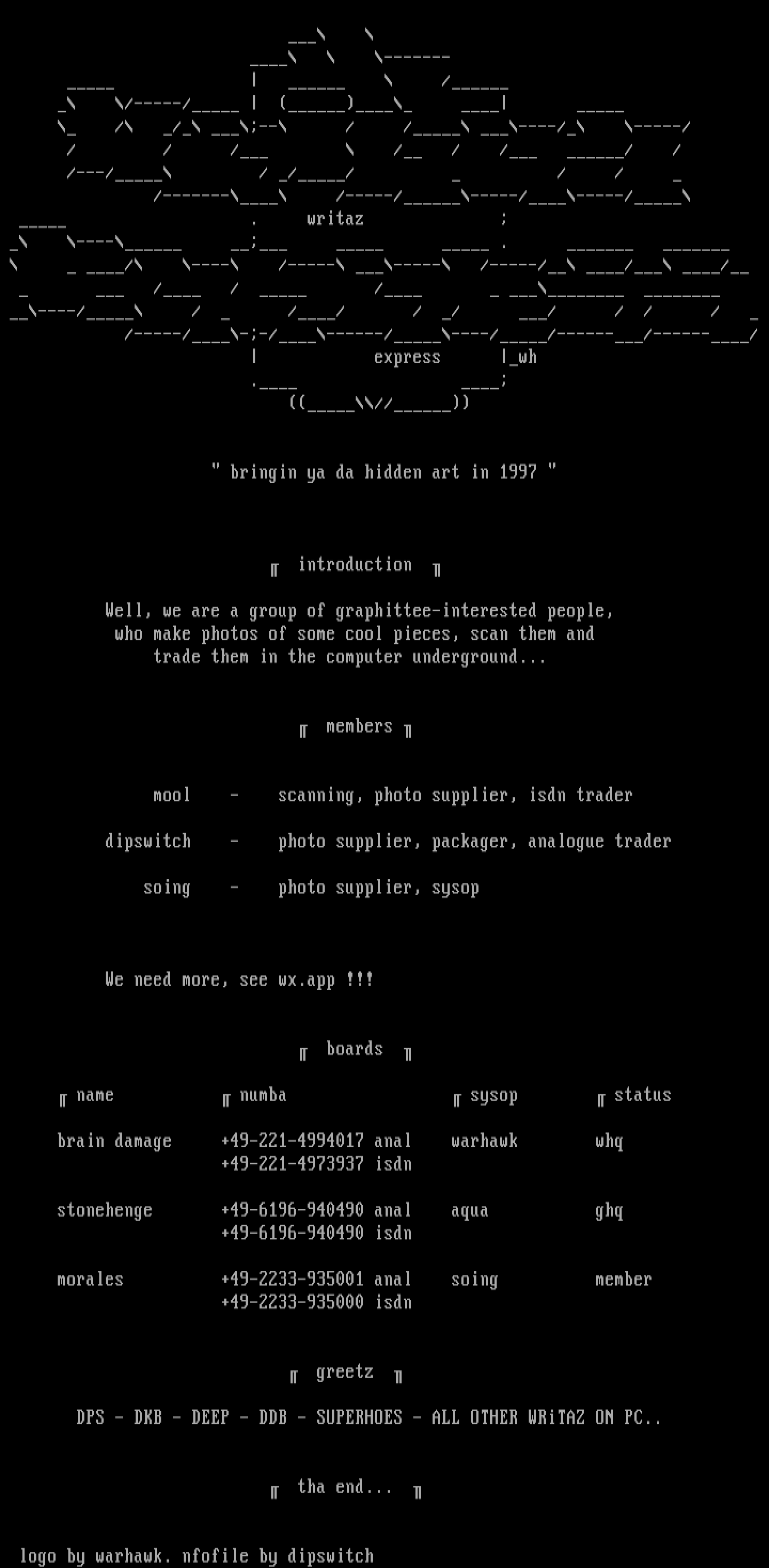 logo by warhawk. nfofile by dipswitch