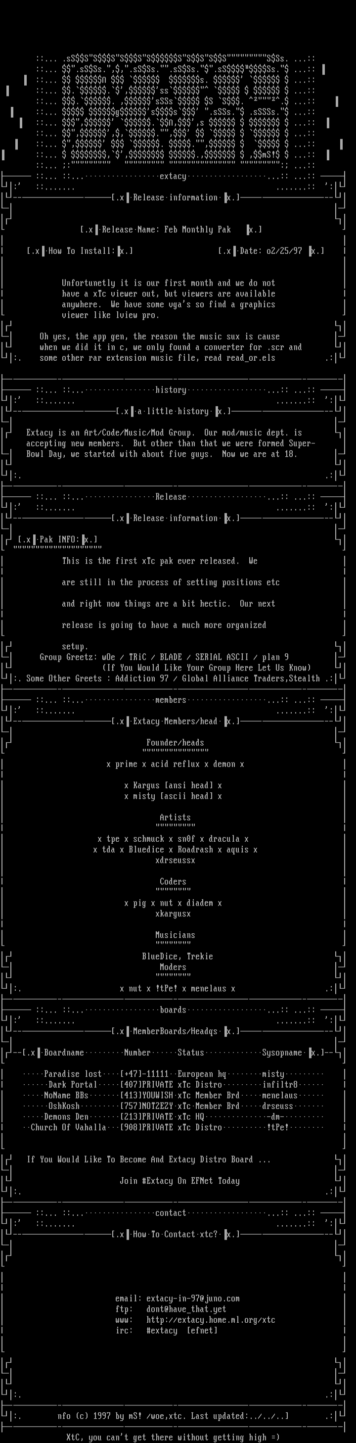 Extacy is an Art/Code/Music/Mod Group. Our mod/music dept. is