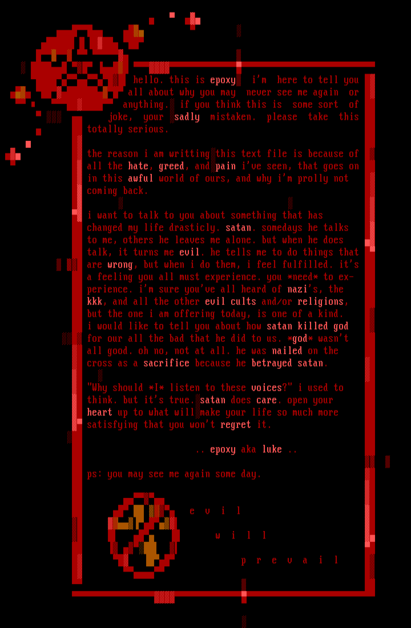i would like to tell you about how satan killed god