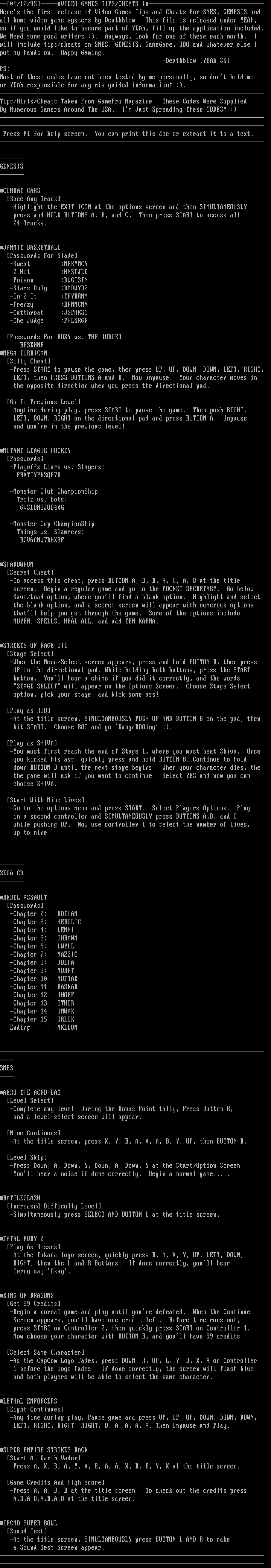 01/12/95VIDEO GAMES TIPS/CHEATS 1