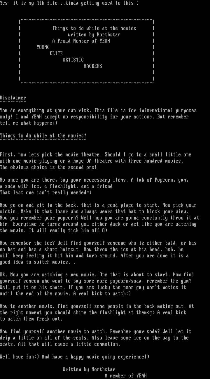 yourself someon who went to buy some more popcorn/soda. remember the gum?