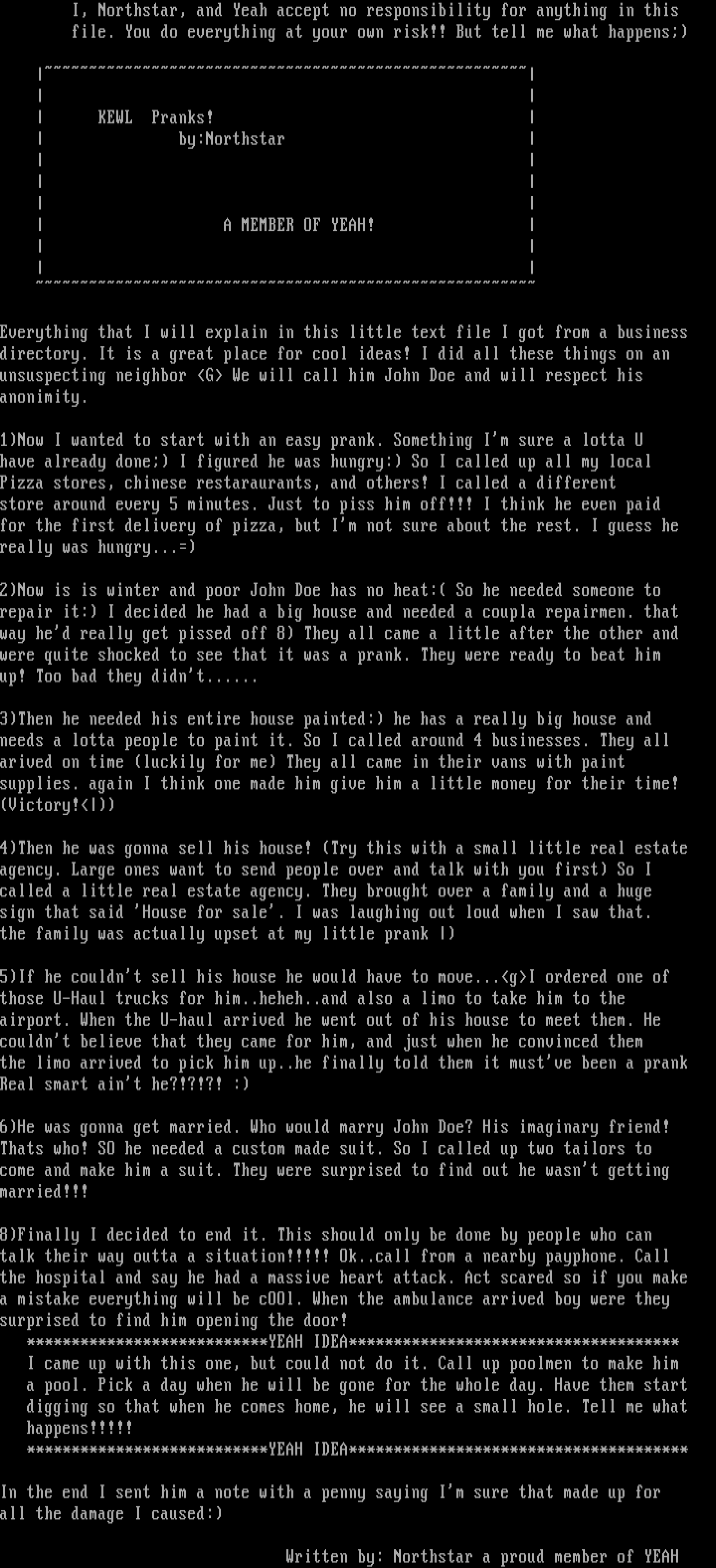 I, Northstar, and Yeah accept no responsibility for anything in this