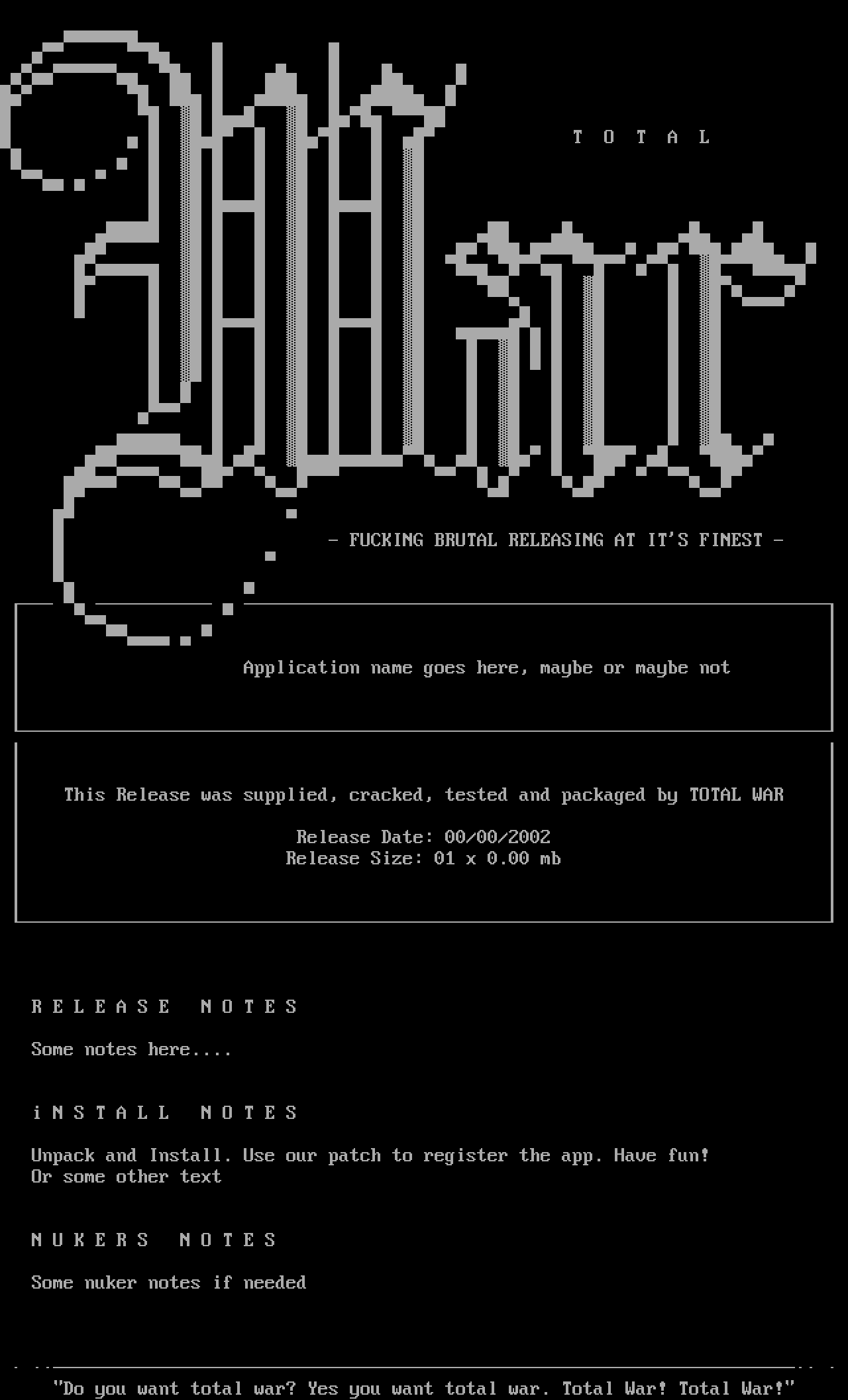 This Release was supplied, cracked, tested and packaged by TOTAL WAR